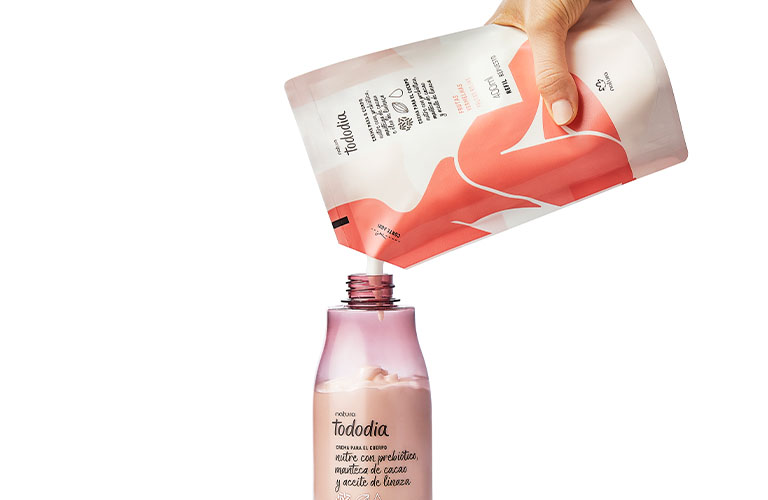 En Natura, este compromiso es parte de nuestra esencia: desde hace más de 30 años ofrecemos refill y alternativas responsables que ayudan a evitar 2,6 mil toneladas de residuos al año.