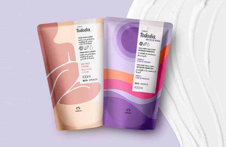 - Cuidados diarios: repuesto crema corporal Natura, repuesto Tododia, repuesto de jabón líquido Natura.