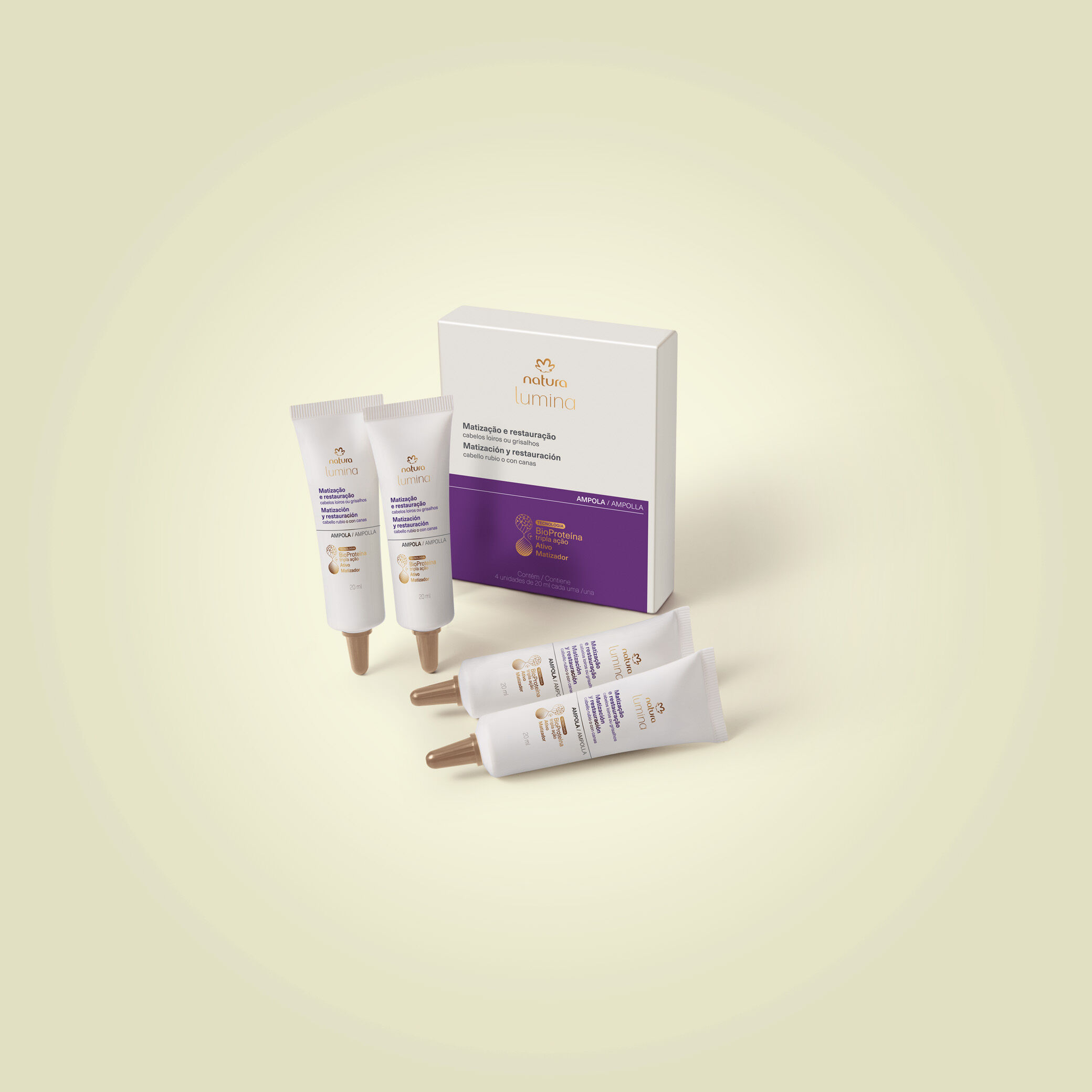 Ampolla restauracion antiamarillamiento cabellos rubios o con canas 4 unidades de 20 ml c/u