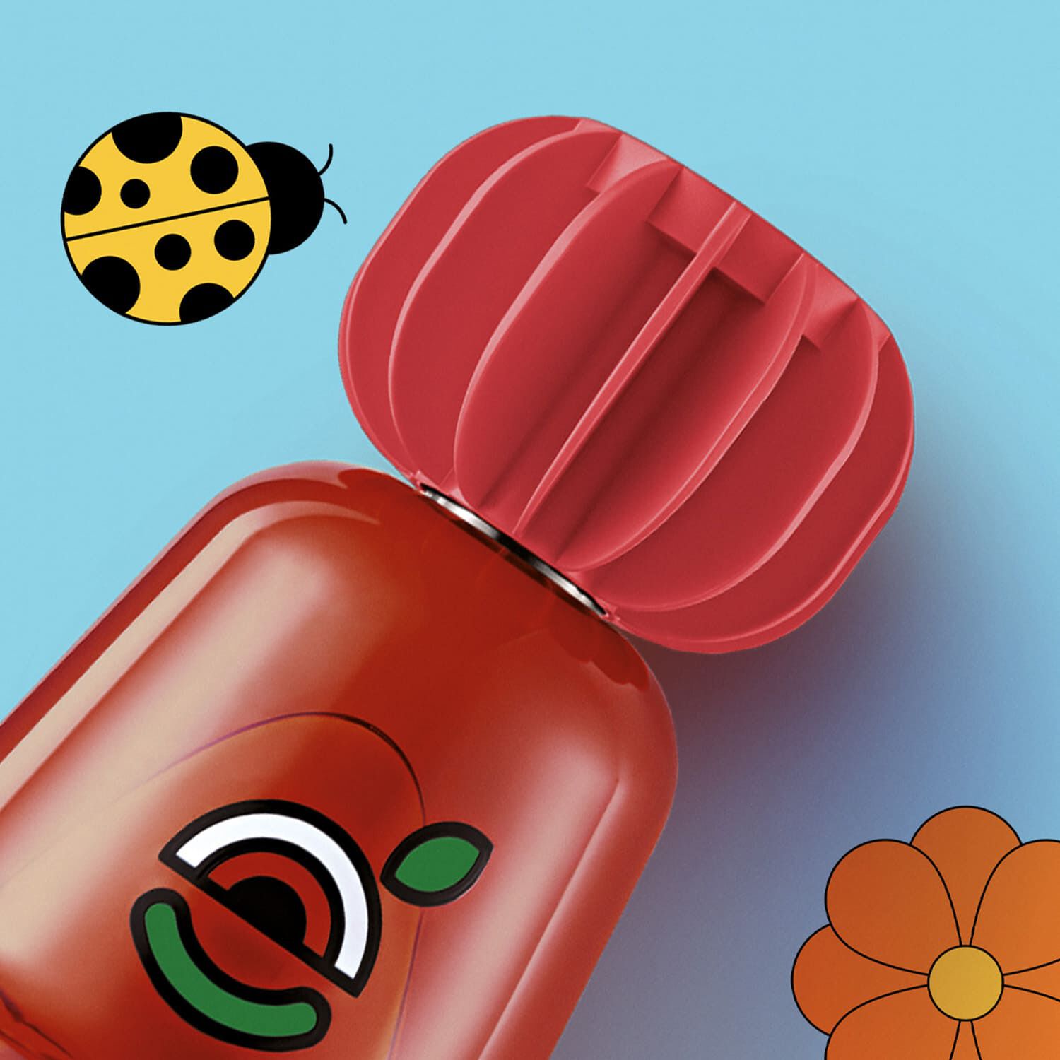 aplicá la colonia en pequeñas cantidades sobre la ropa o directamente en la piel de los niños, como en el cuello, las muñecas y detrás de las orejas, para lograr un aroma suave y duradero