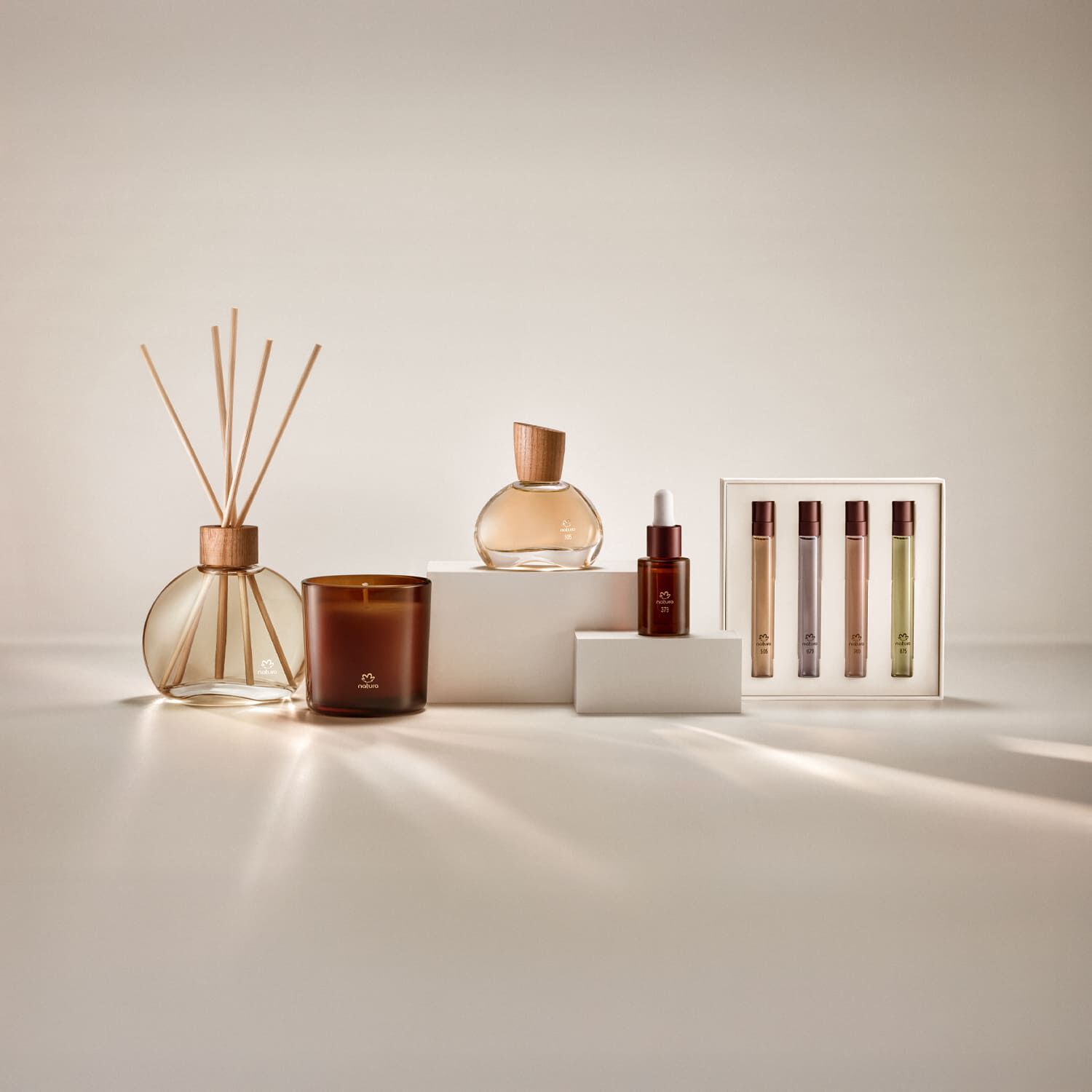 una invitación a sentir los aromas vibrantes de la naturaleza. combinaciones exclusivas de nuestros ingredientes naturales latinoamericanos propietarios con ingredientes clásicos de la perfumería mundial, que sorprenden los sentidos y las emociones.