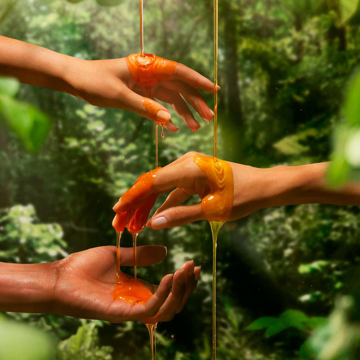 ingredientes obtenidos de forma sustentable. 90 % de ingredientes de origen natural. envase que reduce el uso de plástico.
