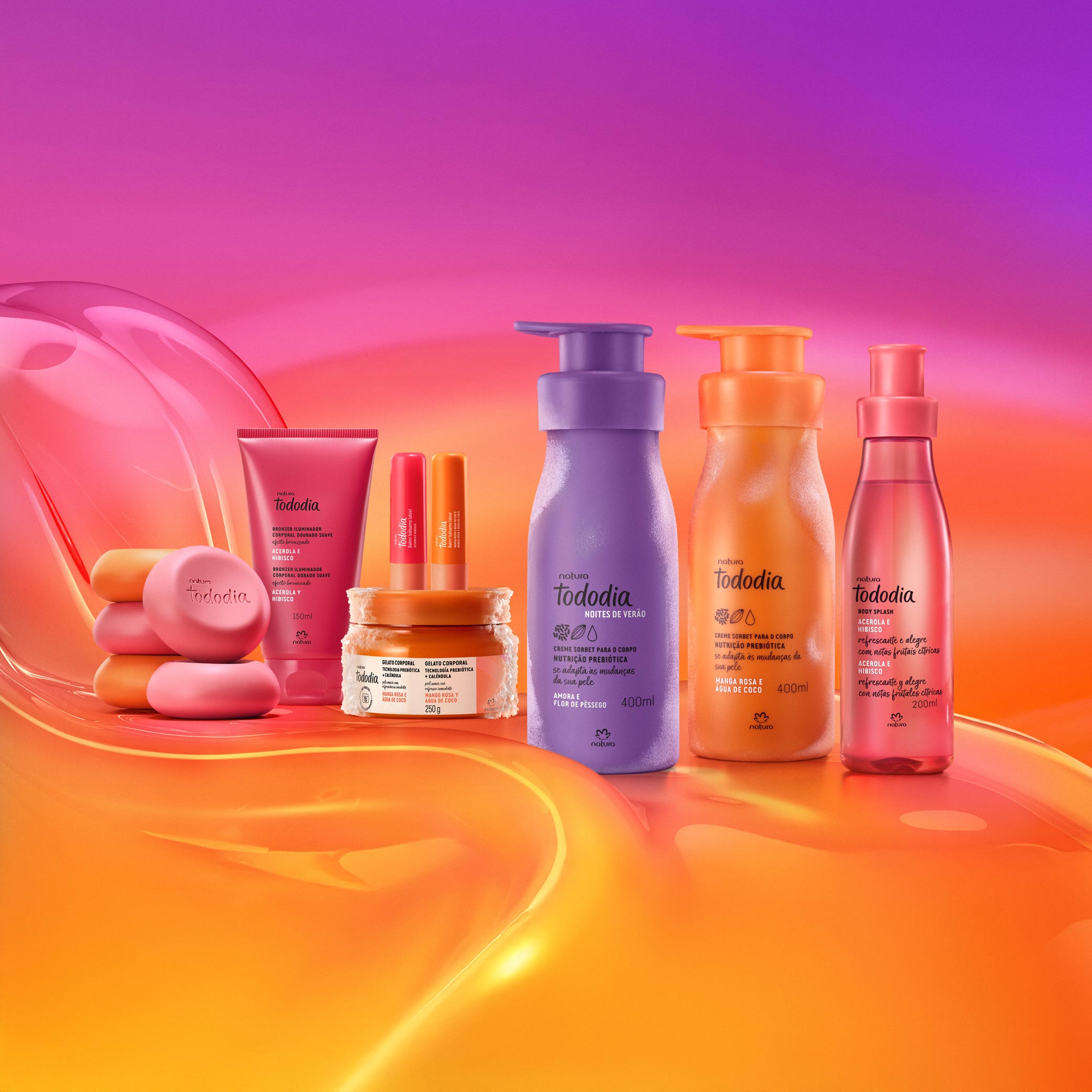 Mango Rosa y Agua de Coco y Acerola y Hibisco traen novedades perfectas para refrescar tu piel. ya la nueva línea Mora y Flor de Durazno te va a envolver como una brisa romántica al atardecer. en verano, Tododia ofrece hidratación profunda y alivio refrescante, además de cuidado y nutrición del cabello.