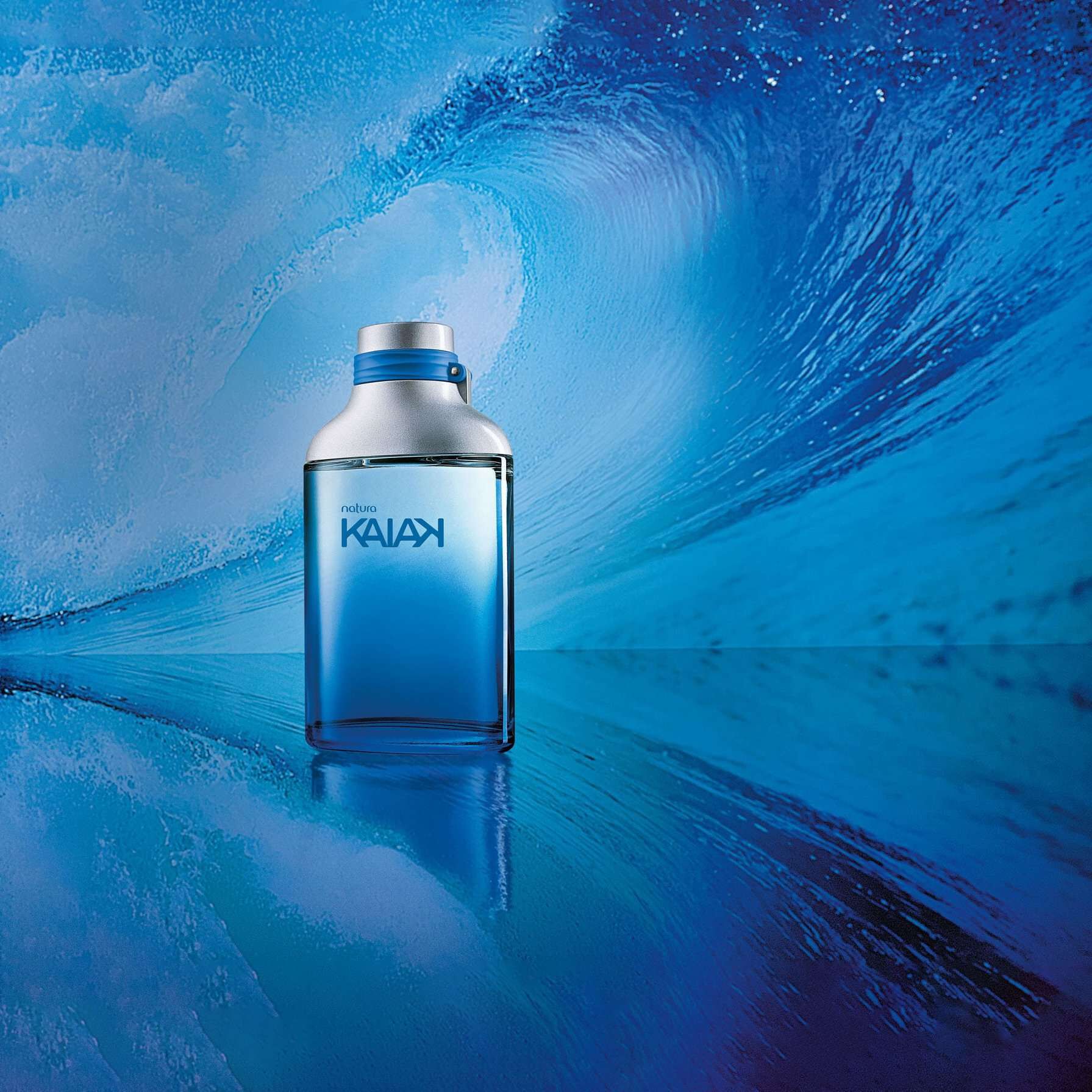 el nuevo empaque de Kaiak está hecho con un 20% menos de plástico, y el 50% de todo ese plástico es reciclado*. Este material es recolectado de las costas o de redes de pesca desechadas. *% Porcentaje referente al promedio anual de plástico utilizado en los empaques de la línea de perfumería Kaiak.