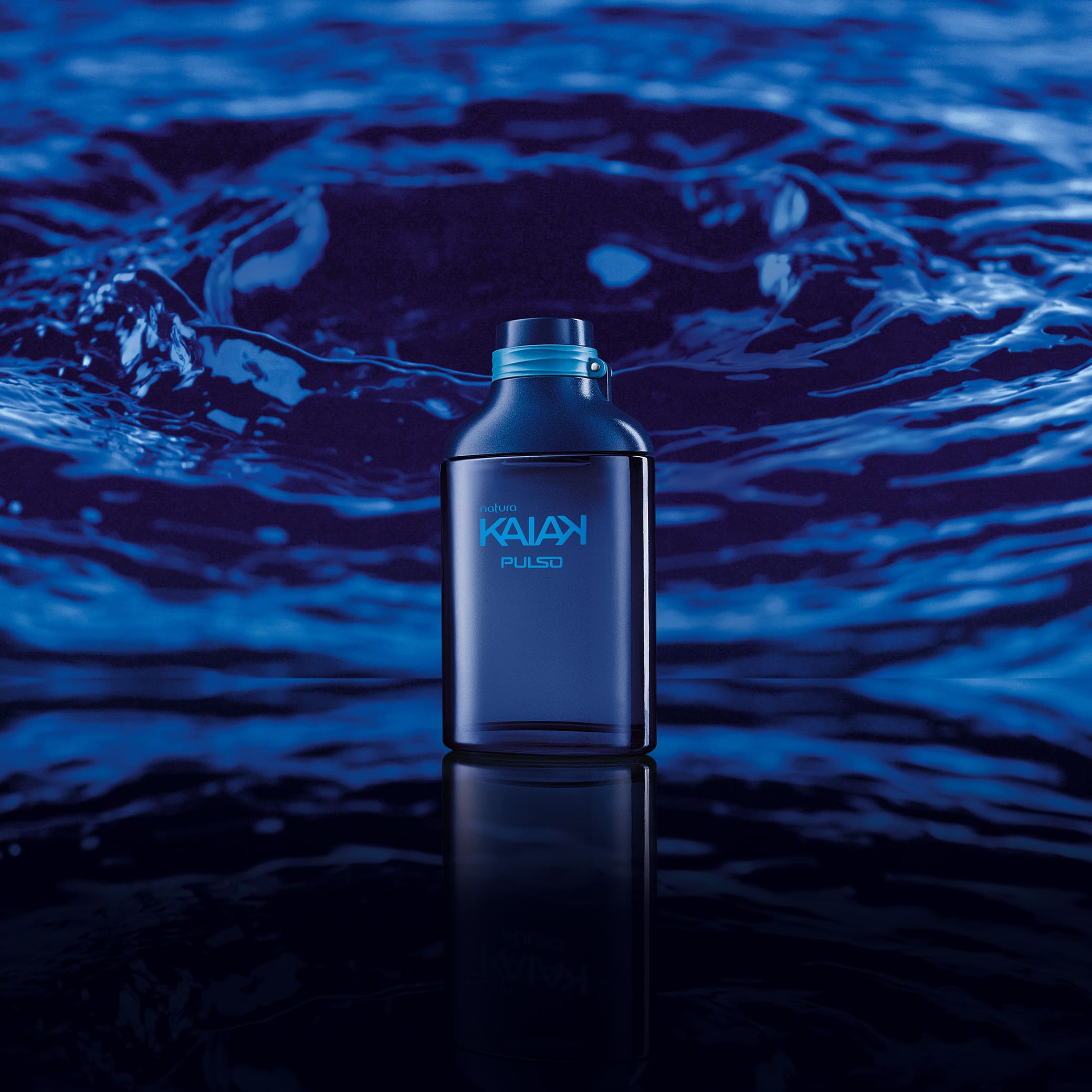 el desodorante Kaiak Pulso combina notas acuosas, hierbas, especias frescas, sándalo y cedro en una composición vibrante y súper refrescante