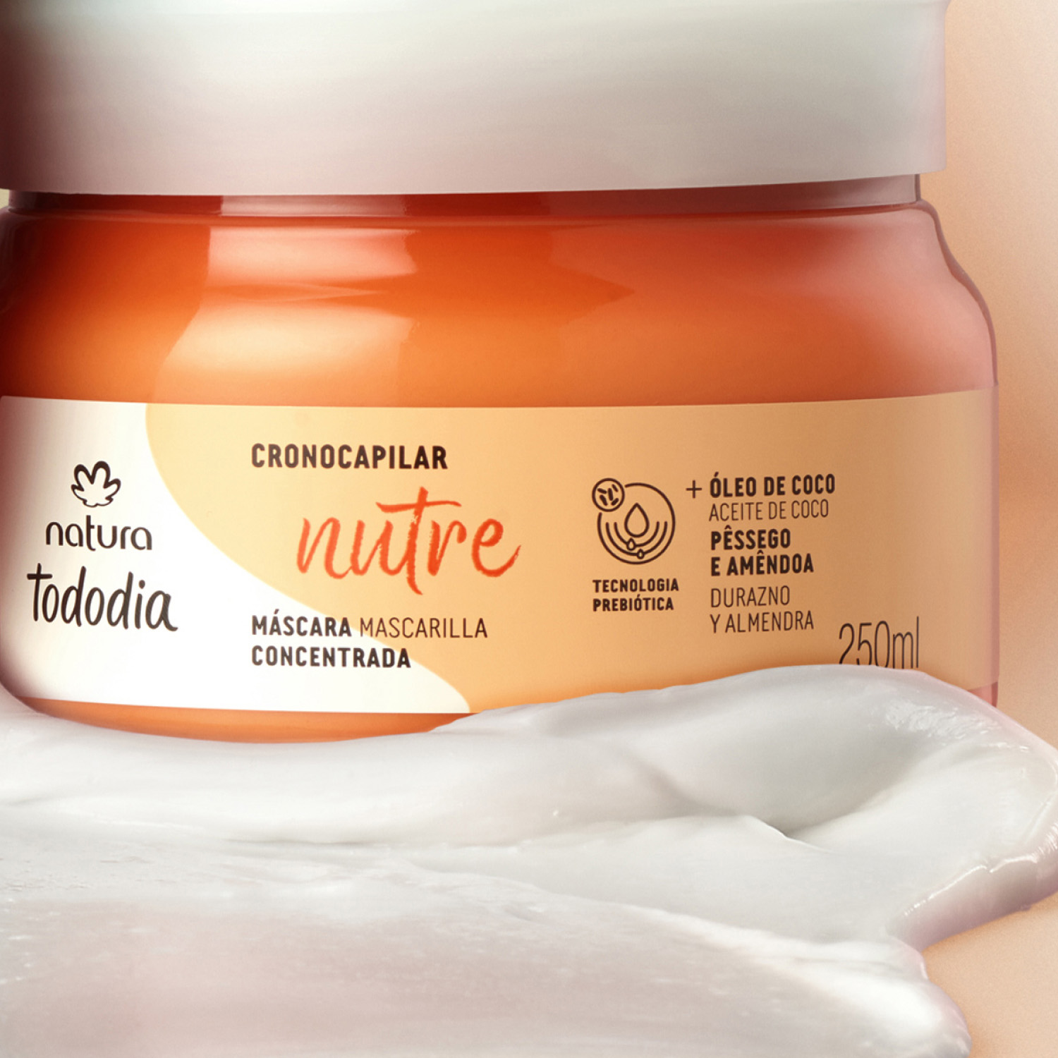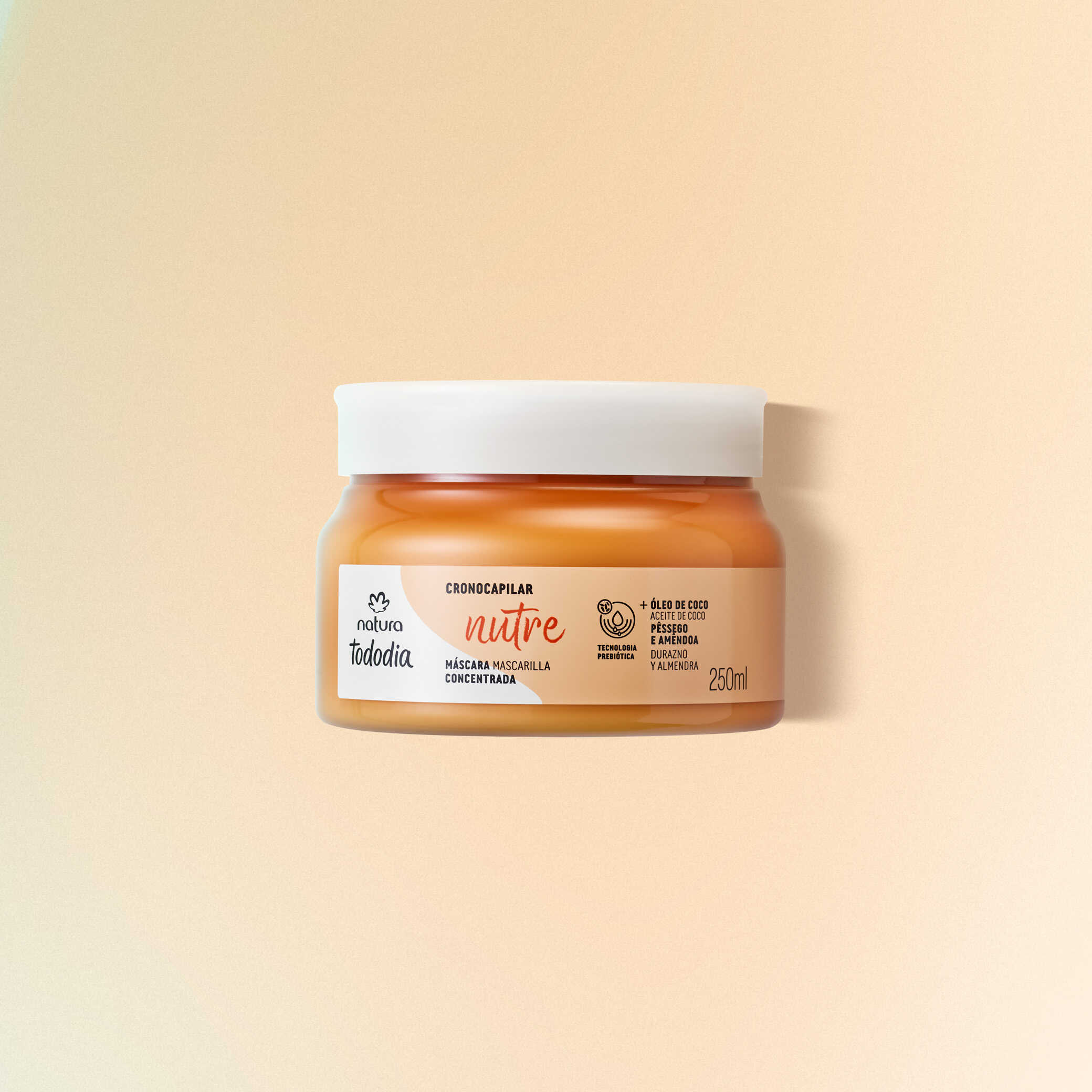 la Máscara Concentrada Nutritiva Tododia Durazno y Almendra contiene aceite de coco y aceite de almendra, que reponen los nutrientes, recuperan el cabello seco y con frizz, dejándolo ultra suave y brillante. TodoDía es el día para cuidar tu cabello con productos y fragancias deliciosas, que aportan bienestar a tu rutina de cuidado
