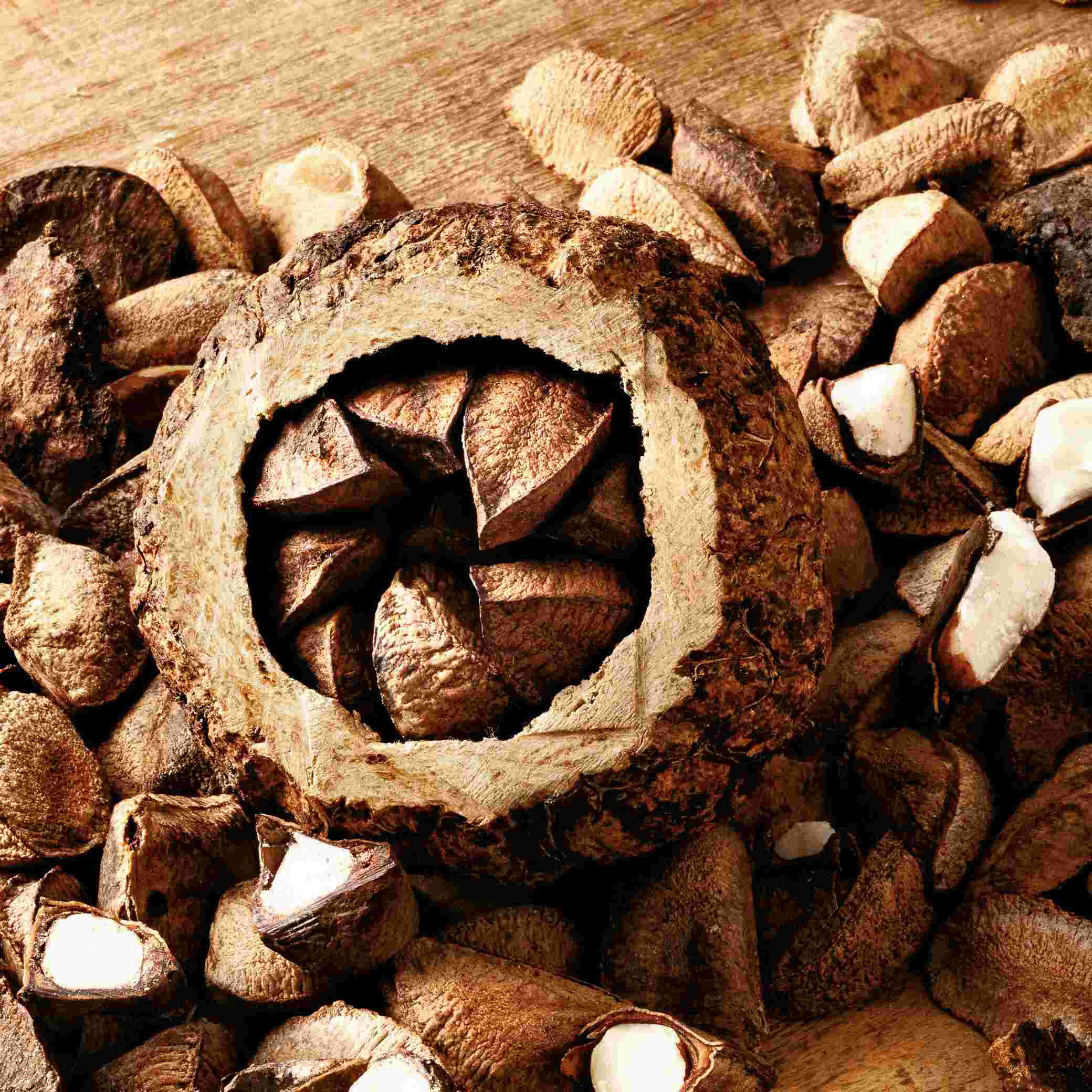Las castañas son una fuente importante de alimento para cientos de especies y fundamentales para mantener la biodiversidad de la Amazonía. Además de ser una de las principales fuentes de proteína vegetal de la selva, las castañas son ricas en selenio y en omega 6 y 9, antioxidantes que nutren hasta las capas más profundas de la piel. Inspirados en el poder de las castañas, transformamos este bioactivo amazónico en un potente tratamiento biocosmético. La fórmula del hidratante corporal es vegana, biocompatible y altamente biodegradable, con 95 % de ingredientes de origen natural y 92 % de ingredientes de origen vegetal, y libre de ingredientes potencialmente nocivos para vos y para el medio ambiente.