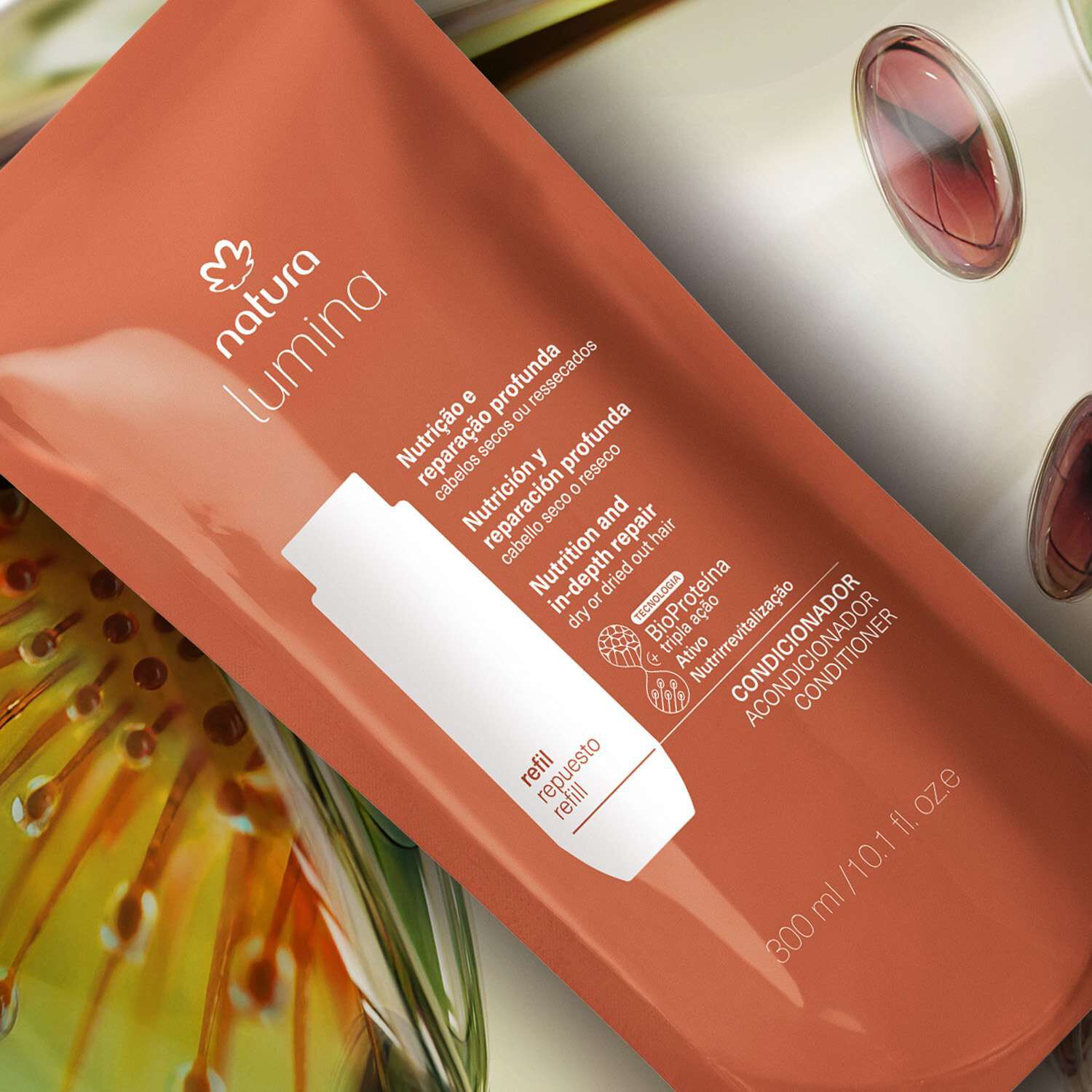 BioProteína Triple Acción + Activo Nutrirrevitalización: combinación exclusiva de activos que actúan en el relleno inteligente de los daños internos y reparación externa de la fibra capilar. Promueven una recarga profunda de nutrientes esenciales, reparación y fortalecimiento del cabello. Activo Nutrirrevitalización: compuesto por la molécula de Hydroxyethyl Urea, que posee alta afinidad con la fibra capilar y penetra a través de la cutícula para promover la reparación y el fortalecimiento del cabello.