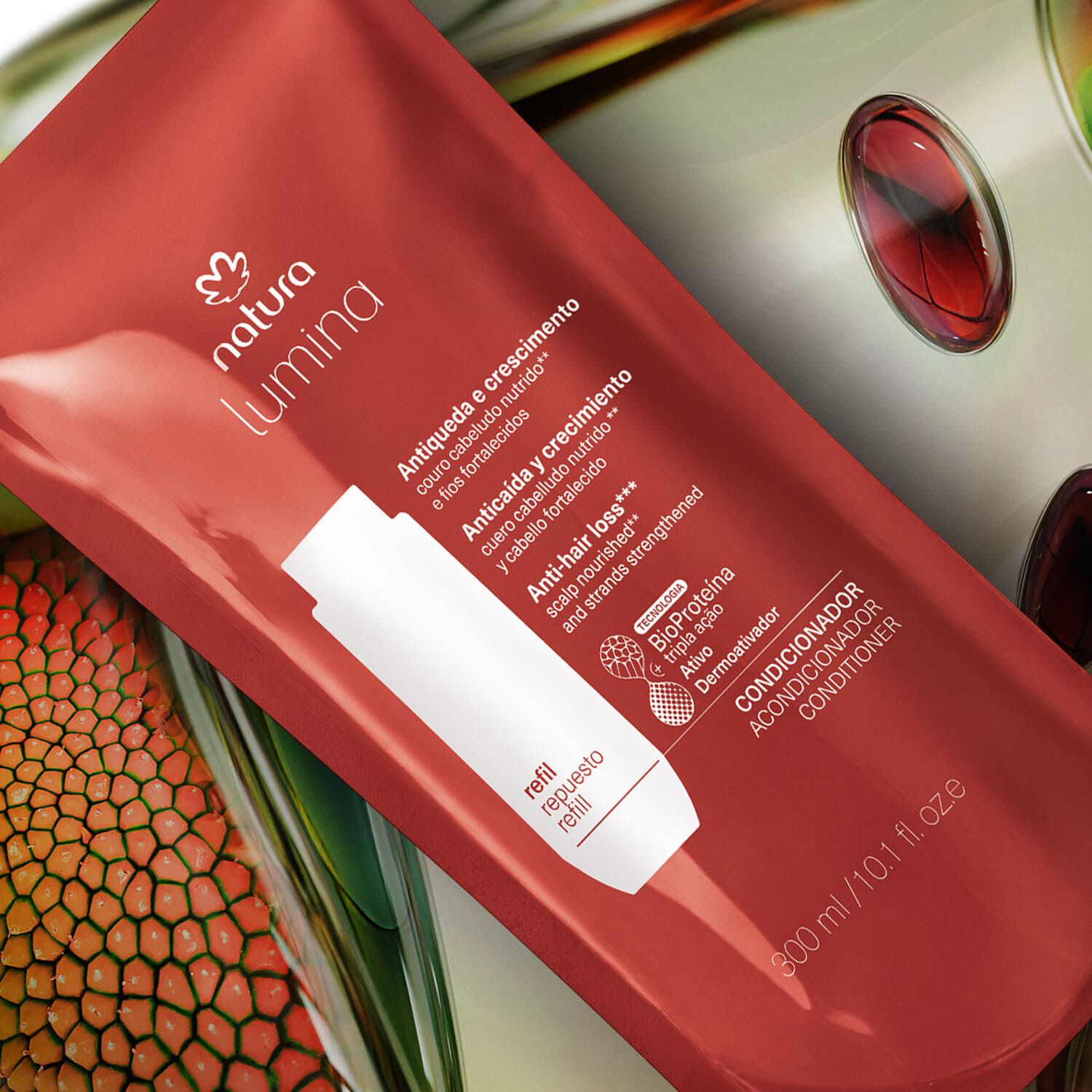 BioProteína Triple Acción + Activo Dermoactivador: combinación exclusiva de activos que actúan en el relleno inteligente de los daños internos y promueven la reparación externa de la fibra capilar. activa y regula las funciones del cuero cabelludo, combate la caída con acción intensa sobre múltiples factores y estimula el crecimiento. activo dermoactivador: la poderosa combinación de moléculas Xylitois y Cafeína es capaz de actuar localmente en los folículos sobre los principales marcadores biológicos relacionados con el proceso de caída capilar, mejorando la irrigación, lo que incrementa la cantidad de nutrientes para el folículo, con acción antioxidante y reguladora del desequilibrio hormonal