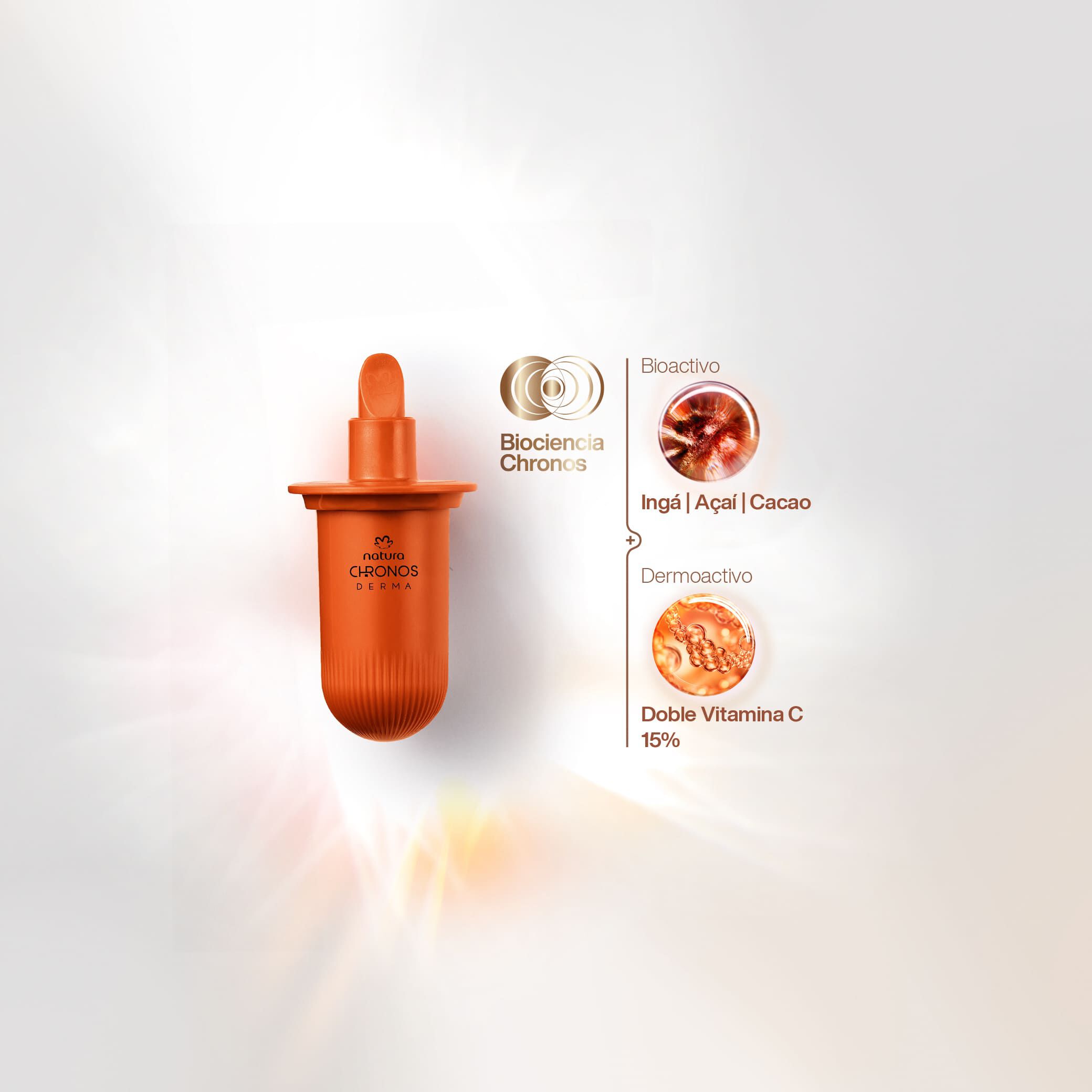unión de potentes bioactivos de la naturaleza y dermoactivos para cuidar de tu piel. los bioactivos Ingá, Açaí y Cacao estimulan mecanismos antioxidantes naturales. por su parte, el dermoactivo Doble Vitamina C 15% tiene acción antiedad, que neutraliza radicales libres de forma inmediata y progresiva.