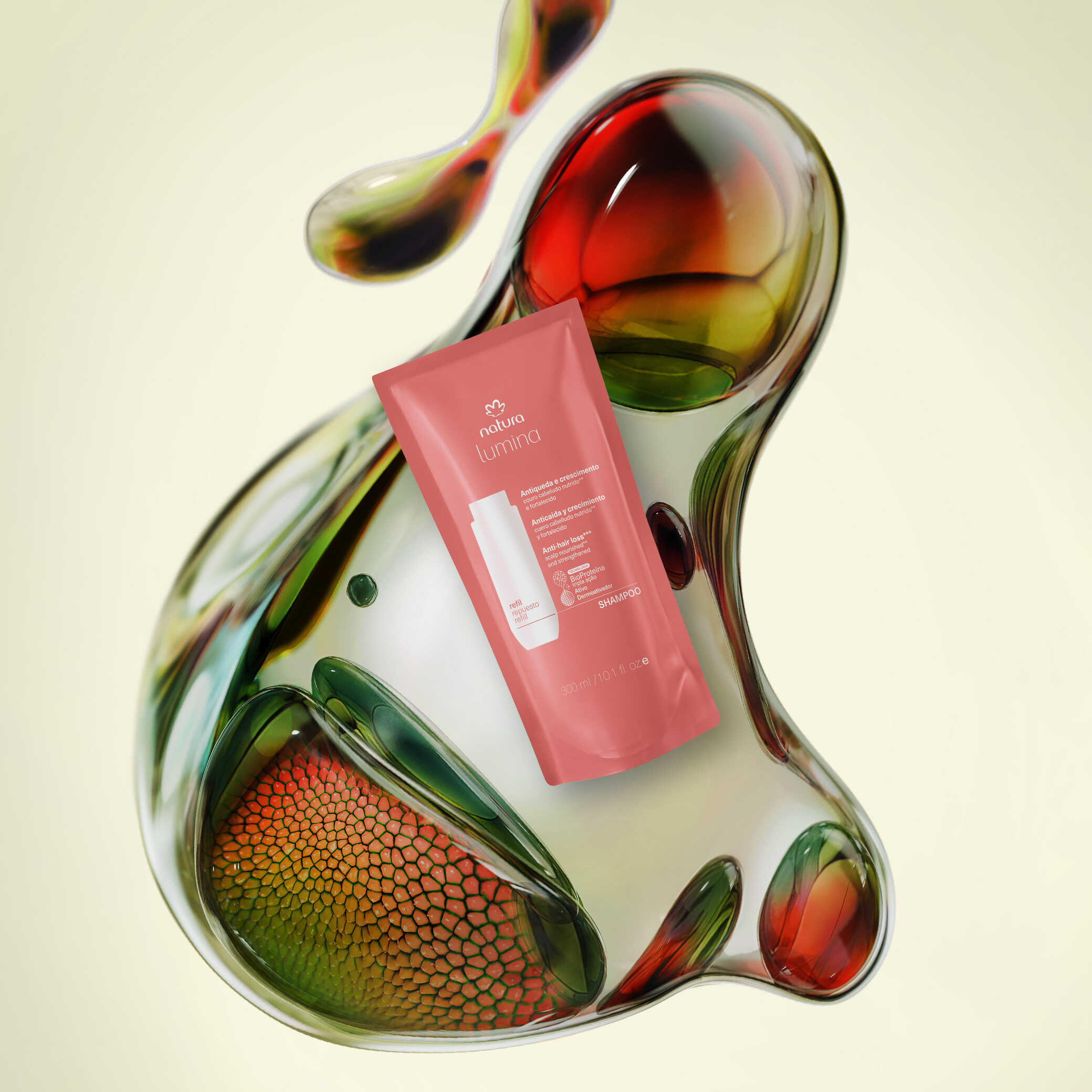 BioProteína Triple Acción + Activo Dermoactivador: combinación exclusiva de activos que actúan en el relleno inteligente de los daños internos y promueven la reparación externa de la fibra capilar. activa y regula las funciones del cuero cabelludo, combate la caída con acción intensa en múltiples factores y estimula el crecimiento