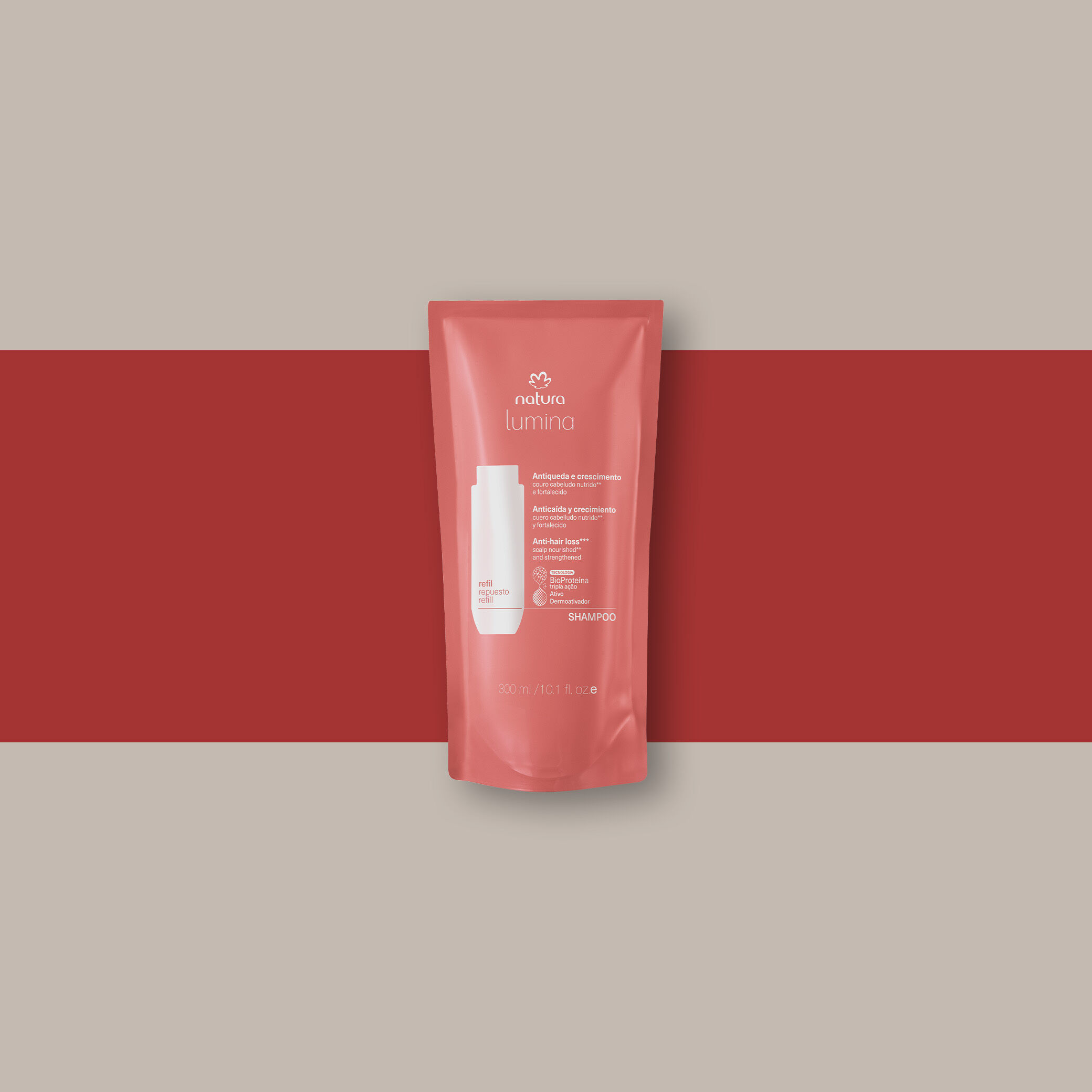 BioProteína Triple Acción + Activo Dermoactivador: combinación exclusiva de activos que actúan en el relleno inteligente de los daños internos y promueven la reparación externa de la fibra capilar. activa y regula las funciones del cuero cabelludo, combate la caída con acción intensa en múltiples factores y estimula el crecimiento